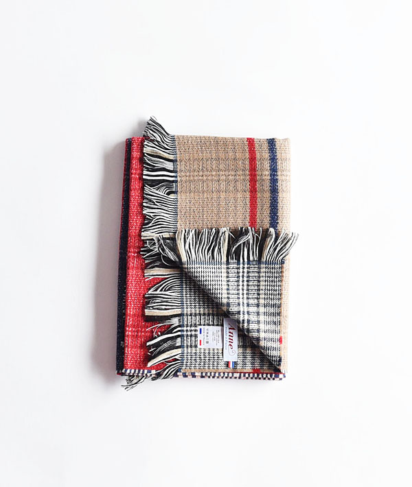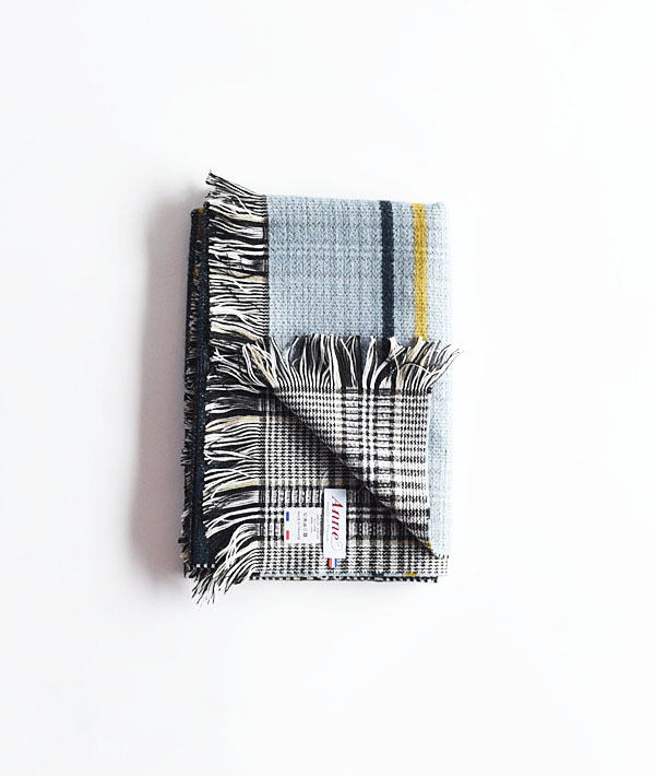 ANNE(アンヌ)は、パリでバッグや靴、ストール、傘にいたるまで幅広いアイテムを展開する服飾雑貨メーカーです。こちらは、グレンチェックとボーダー柄を組み合わせたリバーシブル仕様のストール。裏表で異なるカラーリングで、スタイリングや気分で使い分けができるアイテムです。