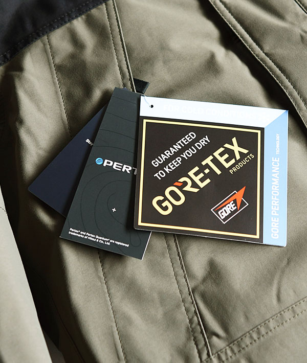 素材: 表地 70D GORE-TEX(2層)(表:ナイロン100%、裏:ePTFE)・肩 Nylon Tussah GORE-TEX(2層)(表:ナイロン100%、裏:ePTFE)・中わた CLEANDOWN(ダウン80%、フェザー20%)・裏地 PERTEX QUANTUM(ナイロン100%)