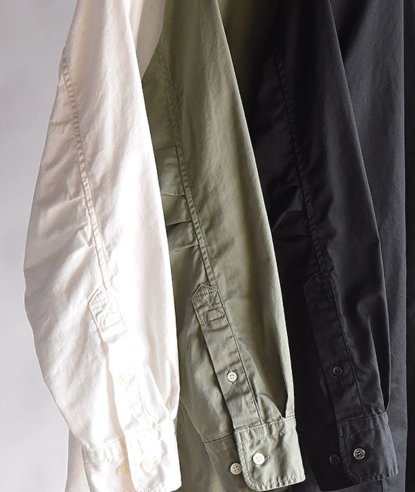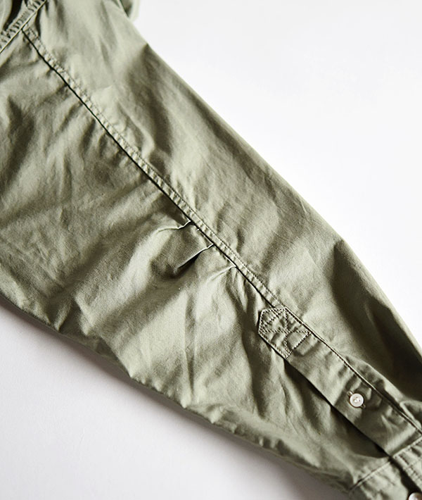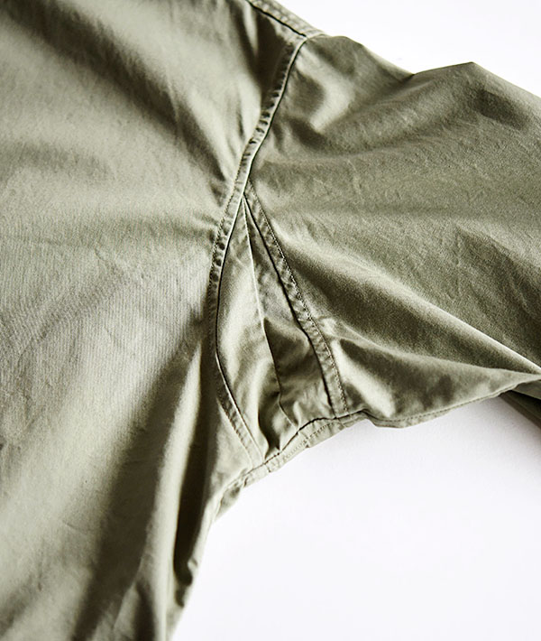 30コーマ糸で織り上げたきれい目の面のコットンバーバリーを使用。ワークディテールを取り入れながらも、素材を打ち込みの良いバーバリーを採用し、カジュアルになりすぎない上品な印象のシャツジャケットです。