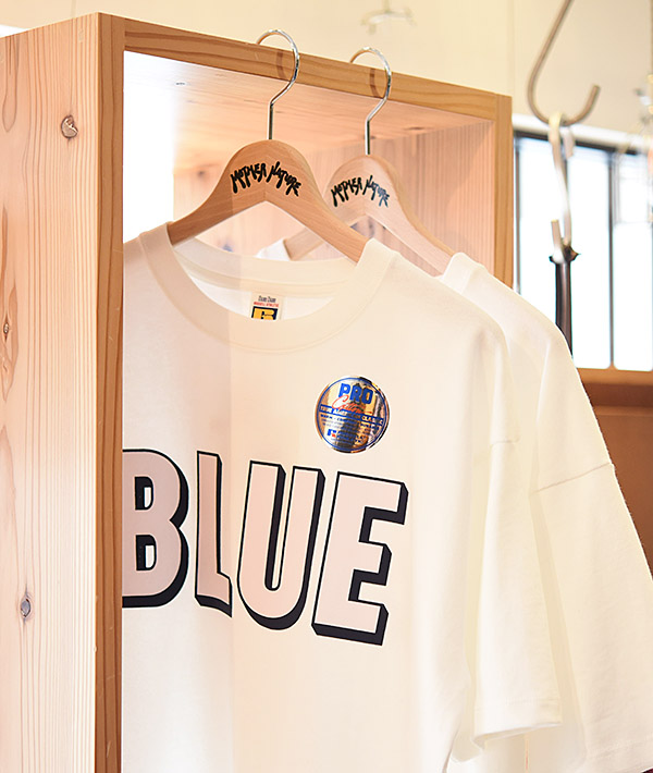 BLUEの立体的な3Dロゴをプリントした T シャツです。身幅が広めのゆったりしたシルエット。ボディーはヘビーウエイトでありながら、適度な柔軟性とソフトな肌触りが特徴のRUSSELLの定番素材8.7ozのPRO COTTONヘビー天竺を使用しています。性別を問わず着ていただけます。
