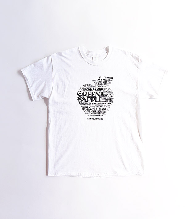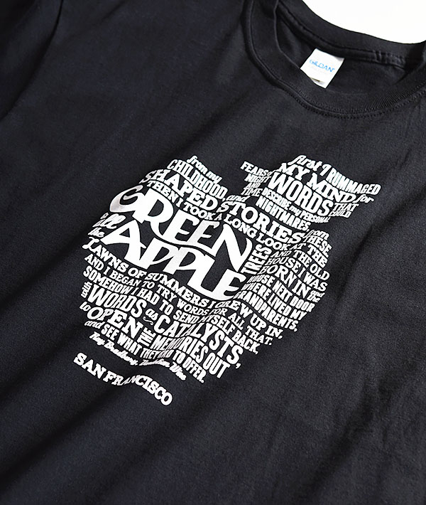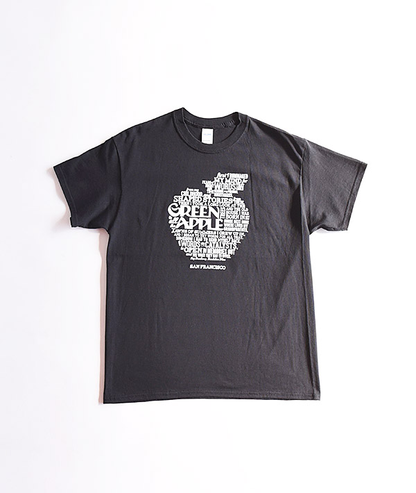 GREEN APPLE BOOKS(グリーンアップルブックス)は1967年にサンフランシスコ、リッチモンドで開店した、ベイエリアNO.1のインディペンデント系ブックストアと言われています。階段やドアがギシギシと音をたてるような、増改築を重ねた歴史を感じさせる風貌の建物に、膨大な量の本やレコードなどが几帳面に整理整頓されて並んでいます。探し物がすぐに見つかる優秀な店としても有名。こちらは「GREEN APPLE BOOKS」オリジナルのスペシャルTシャツになります。※ボディにはGILDANを使用しています。