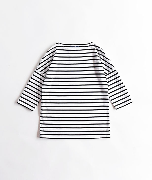 SAINT JAMES (セントジェームス) SLOUCH 七分袖ドロップショルダー ホワイト×ブラック【WOMENS】