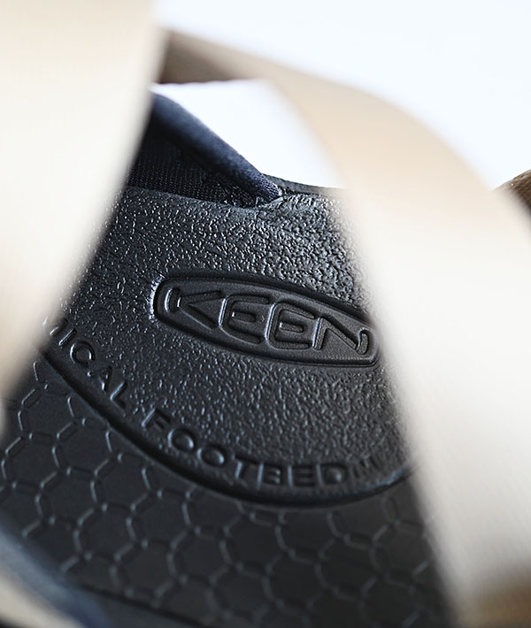 KEENオリジナルのトゥプロテクションを搭載したストラップサンダル アッパー部にバックルを採用する事で脱ぎ履きが容易になり、フィッティング調整も可能。水辺から陸地まで活躍する水陸両用のウォータープルーフサンダルです。また、ソックスと組み合わせれば、長時間の歩行や各種アクティビティーにも使える汎用性の高さも魅力です。