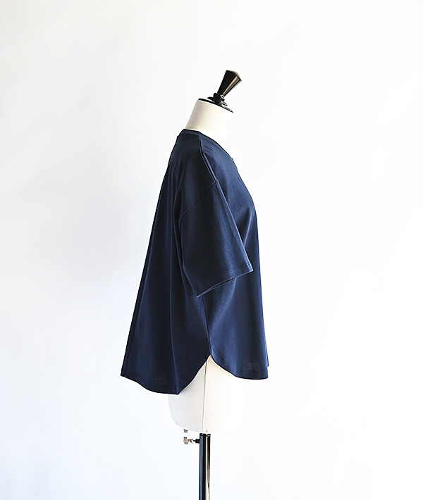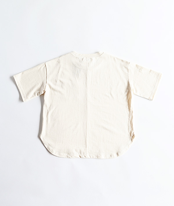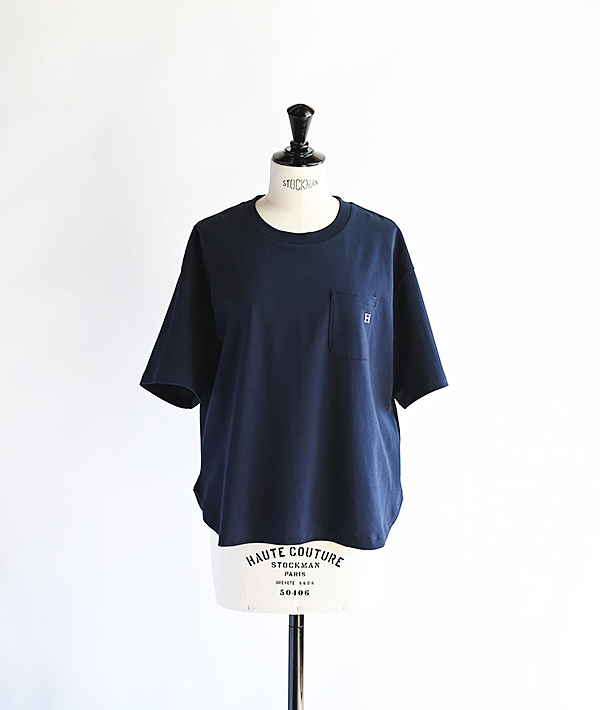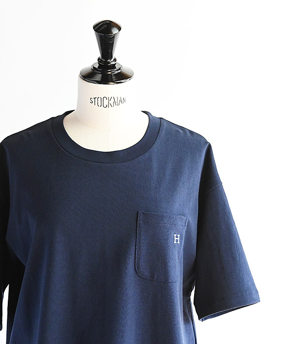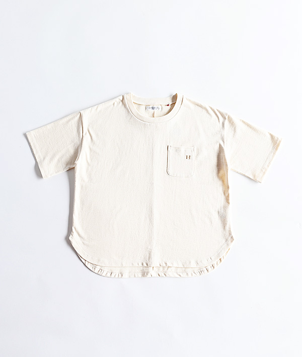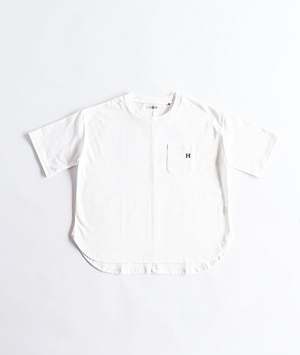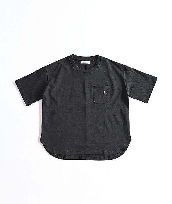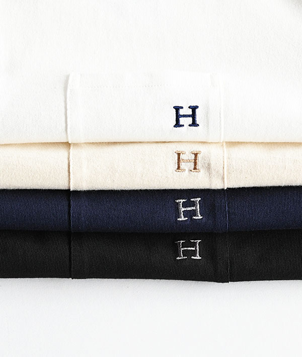 太番手の空紡糸を使用しているため、独特なシャリ感がありながら、柔らかさも持ち合わせたコットン天竺生地を使用したクルーネックTシャツ。ゆったりとしたシルエットや胸にあしらわれたH刺繡もポイントです。裾がラウンドテールになっているのでタックアウトしてリラックス感のある着こなしもおすすめです。