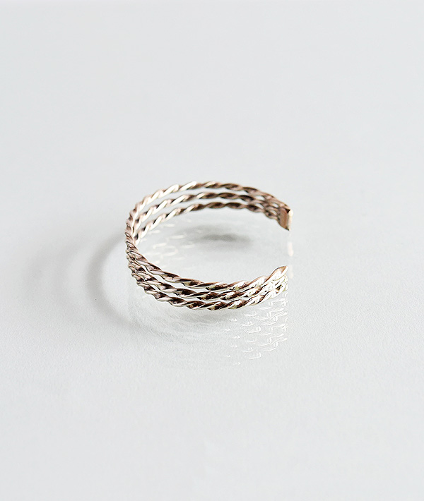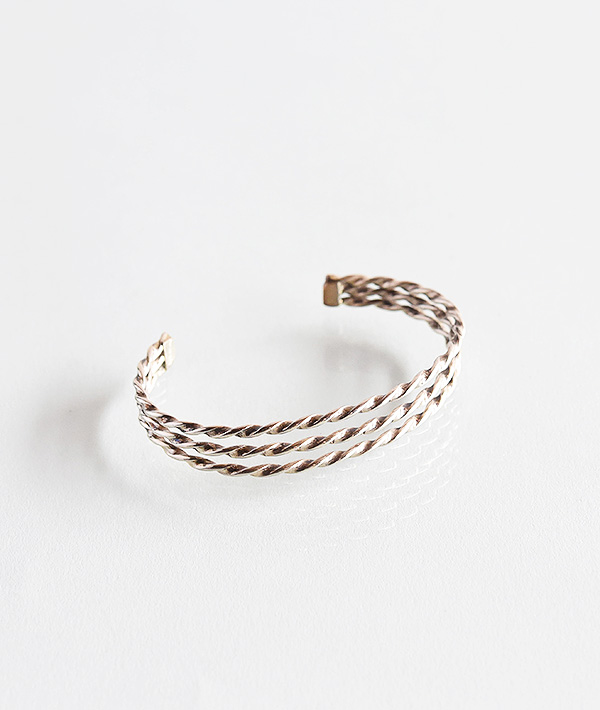 Taheの得意とするツイストワイヤー技法を取り入れたデザイン。正確にツイストさせたシルバーを3連のツイストワイヤーで構成させた繊細で美しい作品です。