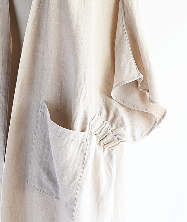 リネン素材で仕上げた涼し気なベストジャケットです。落ち感のあるリネン素材を使用し、ミリタリー感のあるヘリンボーン柄もポイントです。ベストタイプで大きめな袖口はレイヤードもしやすく、カットソーやシャツとの合わせもおすすめです。