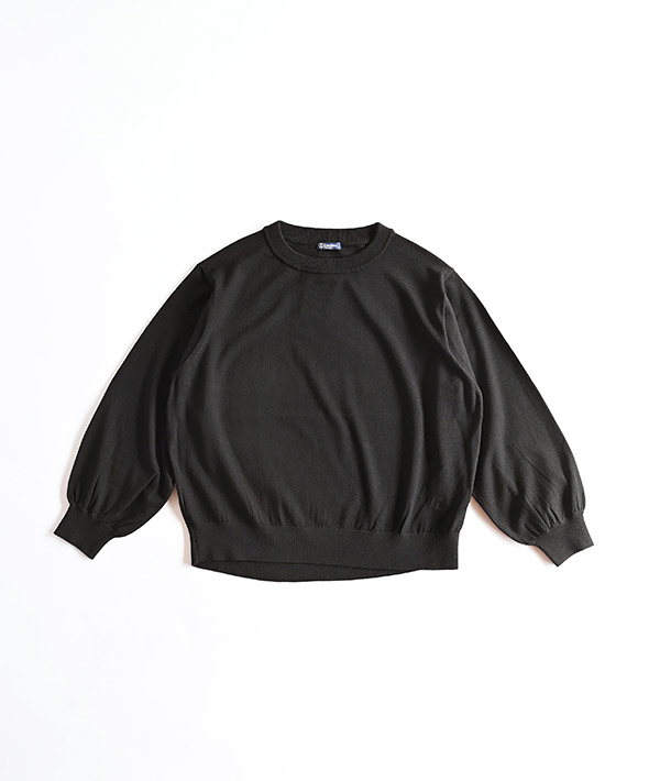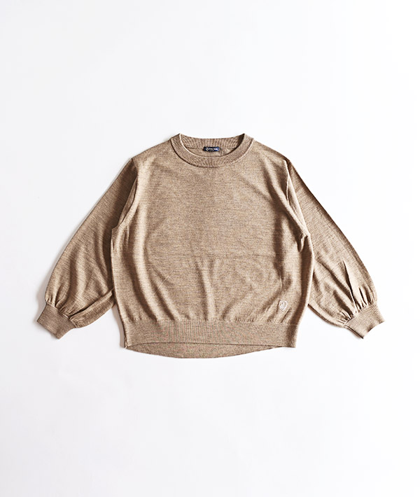 袖口にボリュームのあるギャザースリーブのクルーネックニット。程よくゆとりのあるボディシルエットにドレープ感ある素材でフェミニンな印象に仕上げています。イタリア ビエラ地区の老舗テキスタイルメーカー BOTTO GIUSEPPE社の素材を使用。芯部分のポリエステルストレッチにウールをカバーリングすることで、目の詰まったしっかりとした表情ながらも、肌当たりの良い柔らかな風合いが心地良い素材です。