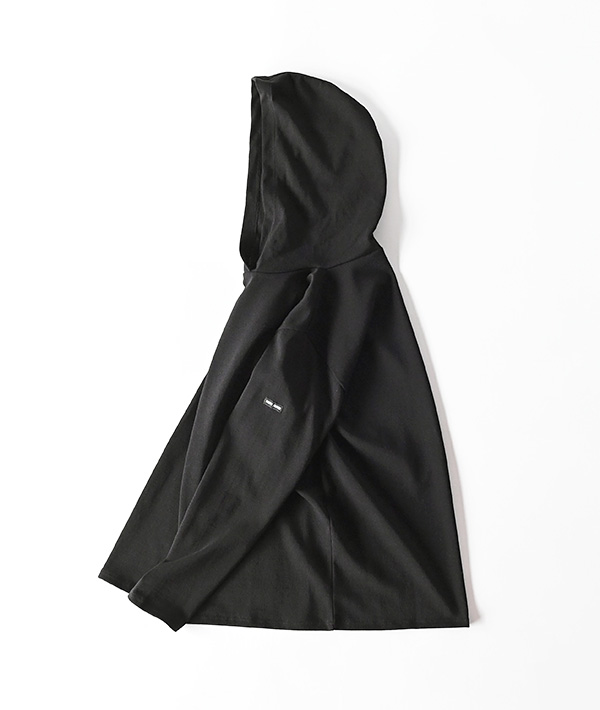 OUESSANTと同素材のコットン100%素材で作られたプルパーカーです。この素材特有のしっかりとした生地感はフードとのバランスも良く、セントジェームスらしい上品な佇まいに仕上がっています。トップスとしてもインナーとしも便利なフード付モデルです。