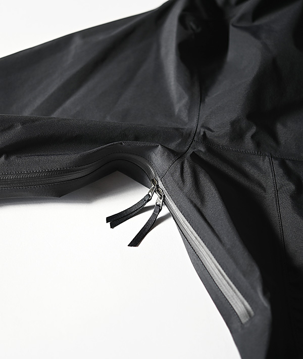 TilakのGORE-TEXラインナップの中で、唯一ハンドフロントポケットを備えたシンプルなフォルムの防水ジャケット。本格派なアウトドアシーンはもちろん、タウンユースにも対応した使い勝手のいい1着です。