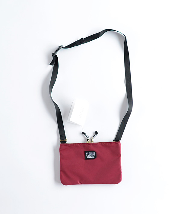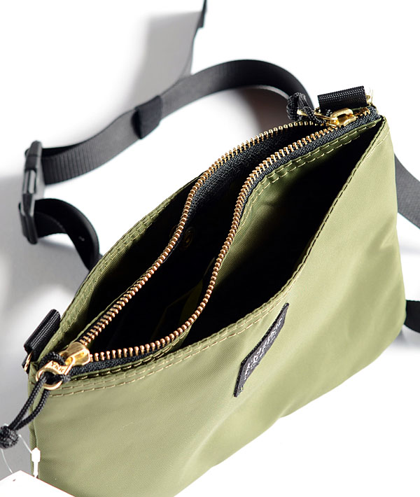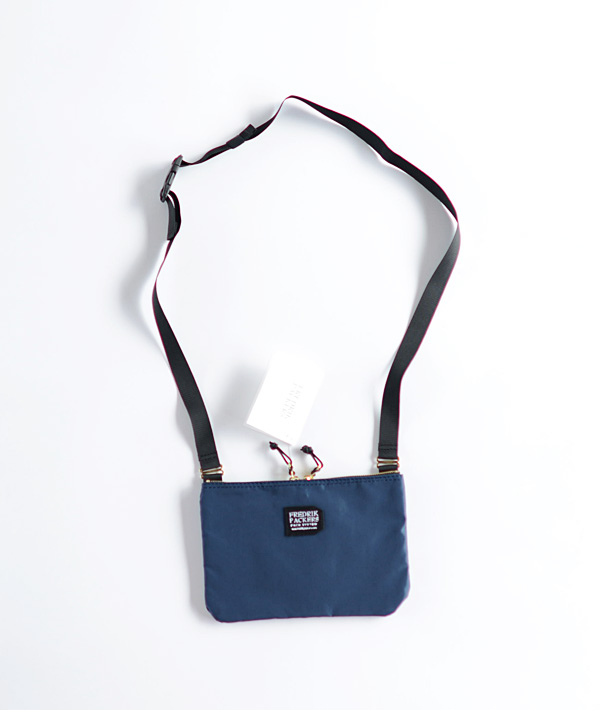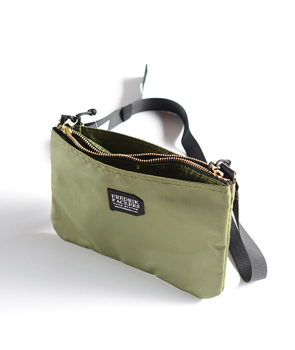 素材に420デニールパッククロスナイロンを使用した、マチのないサコッシュタイプのショルダーバッグです。メイン開口部にはクラシックなイメージの金属ファスナーを備え、その前後にはドット釦留めのポケットを装備。小物の出し入れや仕分けに便利なデザインです。また、2.5cm幅のテープに着脱可能なバックルはスムーズな長さ調整が可能。普段使いはもちろん、アウトドアやトラベルにも使いやすいサイズ感のシンプルなショルダーバッグです。