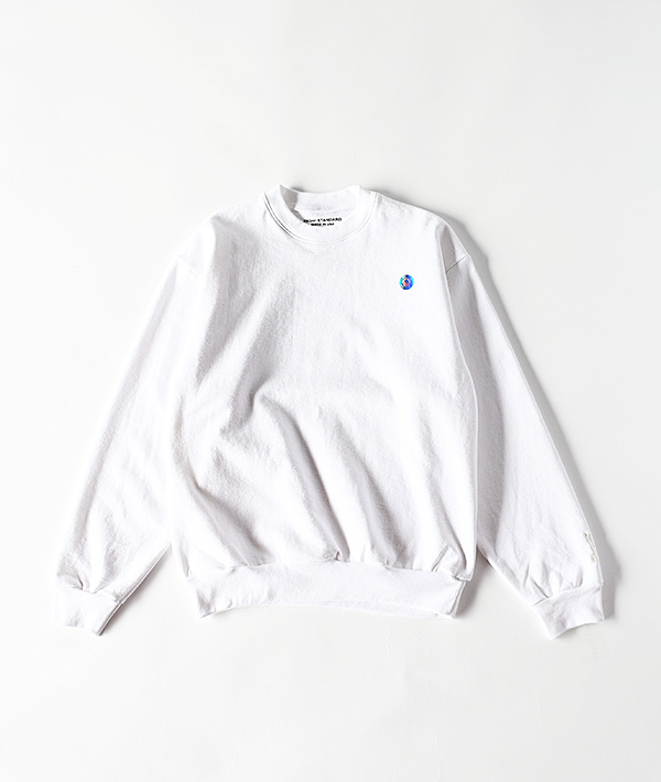 Made in USAのHIGH!STANDARD 14oz クルーネック スウェットシャツ。 14オンスの厚みのある裏起毛のヘビースウェット素材は、独特なアメリカの空気感を醸し出してくれます。全ての工程をアメリカの熟練された職人たちの手で行っており、洗いを施した素材は縮みもほとんどありません。左袖口にはSTANDARDの頭文字の「S」の刺繡をさりげなく記しています。身幅にゆとりをもたせた、ボクシーなシルエットは性別を問わないクラシックなスタイルになります。
