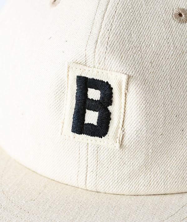フロントにBワッペンをあしらったコットンリネンデニムベースボールキャップ。BLUE BLUEオリジナルのセルビッチゴムが内側に施されており、フィット感のある被り心地となっています。
