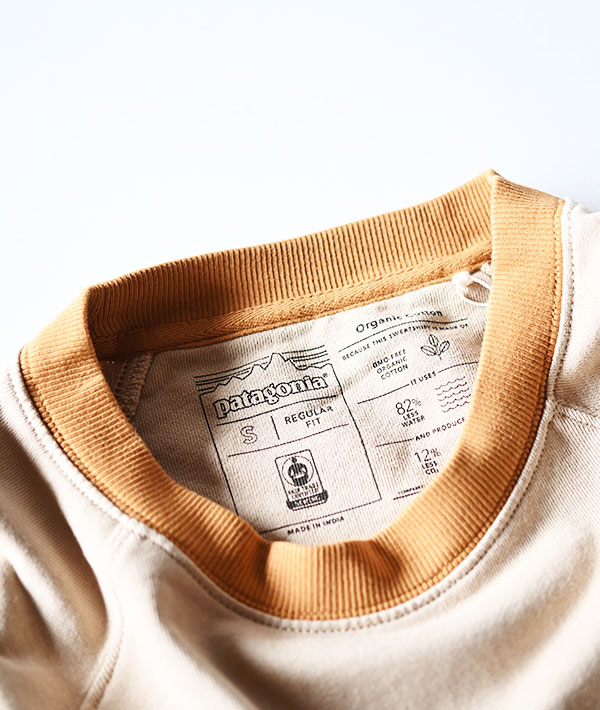 9.4ozのオーガニックコットン100%のフレンチテリー素材を使用したスウェットシャツ。一般的なコットン製スウェットシャツに比べ水の使用量と二酸化炭素排出量を削減。フェアトレード サーティファイドの縫製を採用しています。