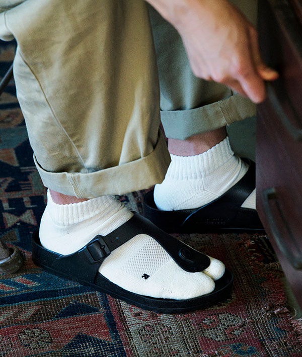 和紙の糸を使い、足底をパイル編みに仕上げた「WASHI TABI PILE ANKLE SOCKS」。