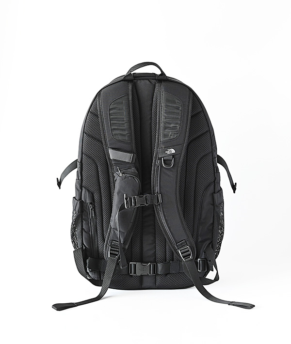 THE NORTH FACEのスタンダードデイパックシリーズのフラッグシップモデルとなる、エクストラショット。背骨のラインに合わせてクリアランスを保つスパインチャンネル構造で背骨への負担を軽減しつつ、エアメッシュとPEシートの立体構造により高い通気性を確保。ショルダーハーネスはフレックスベントテクノロジーを採用し、テクニカルパックで培った技術で仕上げています。メインコンパートメントは、大きく開閉するパネルローディングタイプ。トップにはフリースライニングを施したガジェットポケットを装備しています。また、ショルダーハーネスのポケットには、サブバッグとして活用できる軽量なトートバッグを内蔵。背面パネルには、シークレットポケットでセキュリティ性を高めています。15インチまでのノート型PC専用スリーブとハイドレーション用のスリーブポケット付き。メイン生地と補強生地の両方にリサイクル素材を採用し、環境保護へも配慮しています。使いやすい30リッター容量の中型サイズです。