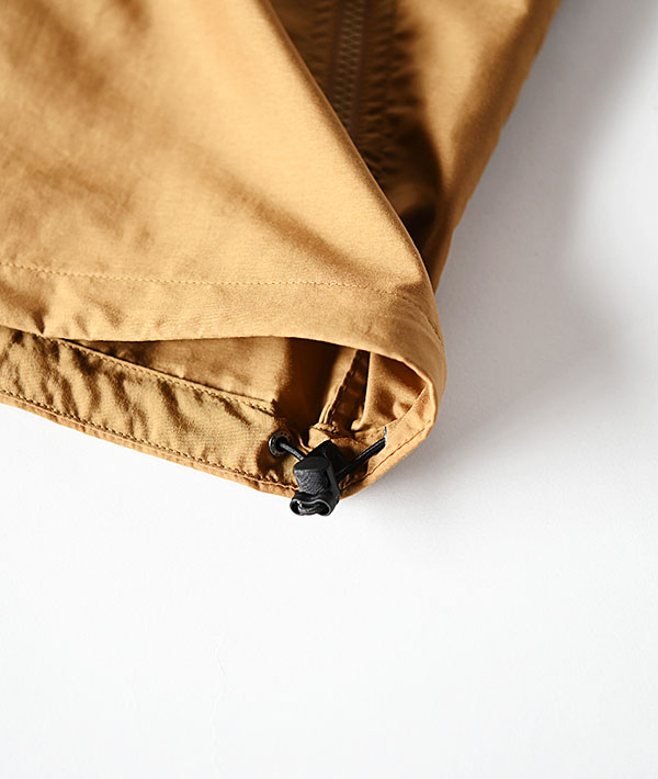 外出先や旅先での悪天候に対応できる撥水加工を施した軽量シェルジャケット。生地はコットンライクでナチュラルな風合いながら防風性も併せ持つため、急な冷え込みが予想される旅先でも活躍。軽量かつコンパクトに収納して携行でき、アウトドアだけでなく日常のさまざまなシーンで幅広く活用可能。シルエットも中間着と合わせやすい、ややゆとりを持った仕上がりです。スタッフサックが付属します。