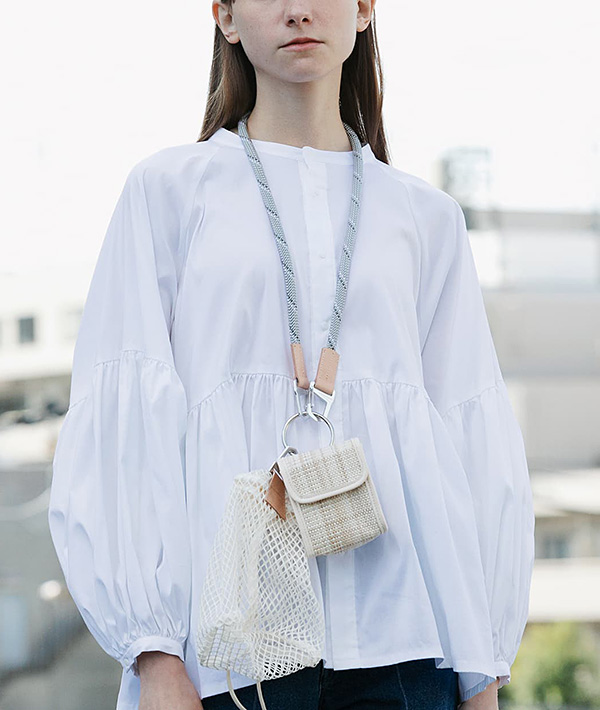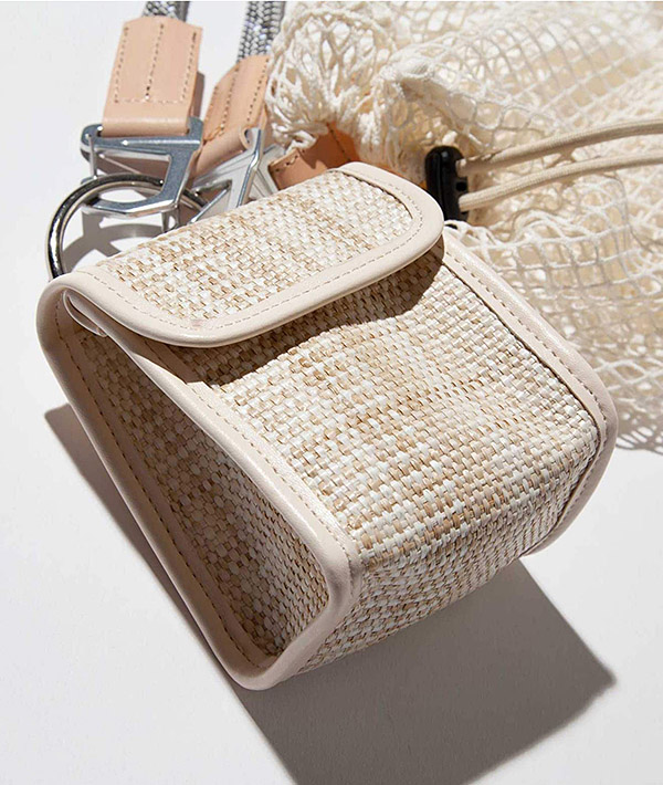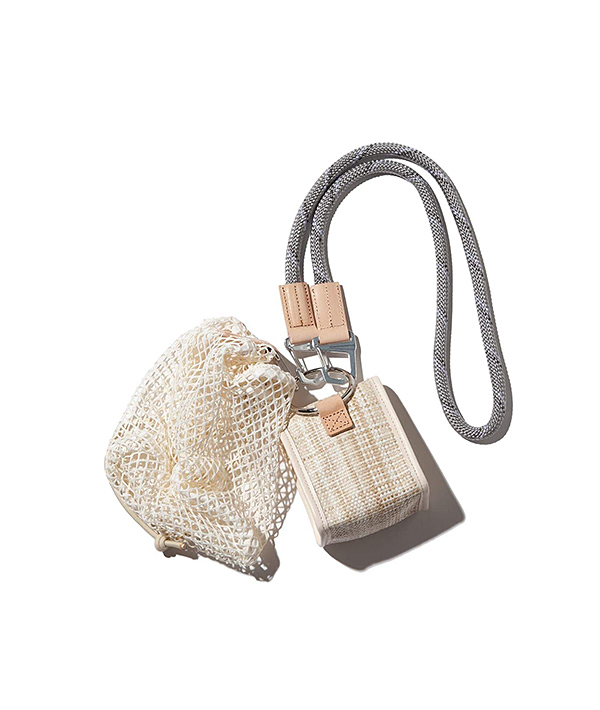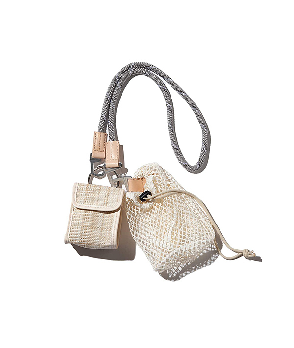 ハンティングフィールドで使用する小型バッグをモチーフに。2つのミニポーチを連鎖。マウンテンロープをストラップ部分のポイントに使用したミニマルなショルダーバッグ。エレガントさとアクティブフィールド上に存在するディテールを融合させたユニセックスなデザインです。