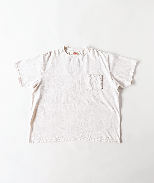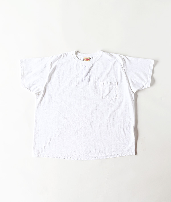 こちらは、7.2オンスのヘビーウェイトコットンジャージーで作られたクルーネックのポケットTシャツをスーパーオーバーサイズにしたXXL S/S POCKET TEEです。着丈をややショート丈に設定する事で、大きい作りですがだらしなく見えない独特のバランス感に仕上げています。