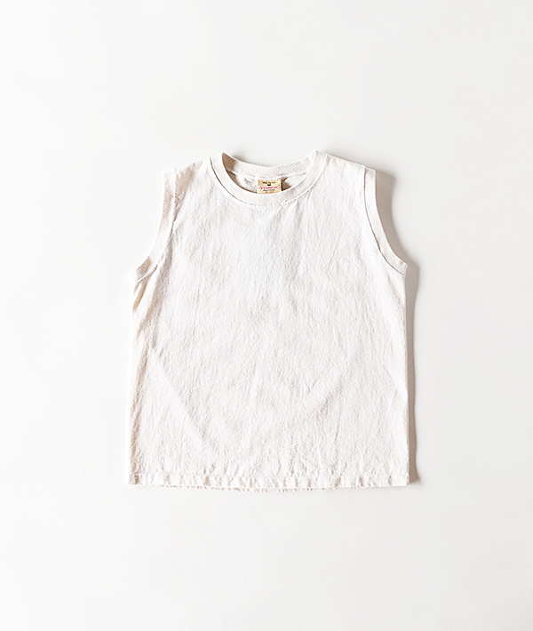 こちらは、7.2オンスのヘビーウェイトコットンジャージーで作られたスリーブレストップ。チューブボディーを使用し、厚手で透けにくいタフな素材感で着こむほどに風合いが増すアイテムです。