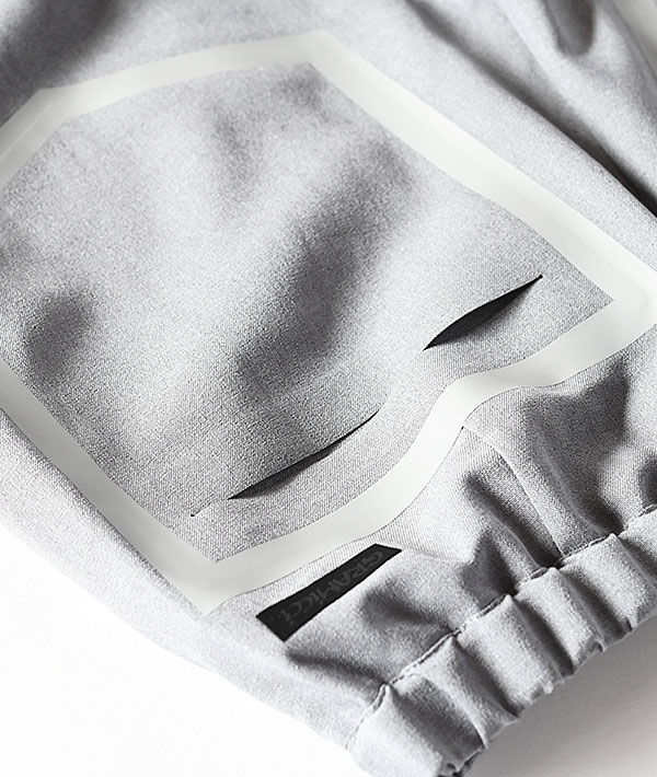 F/CE.デザイナーの山根氏がインラインを手がけるラインが F/CE.のフィルターを通した形を作りました。NNパンツをベースにしたシームレス設計。テープのテクニックなど特殊技術によるシームレス、かつミニマルな印象。ポリエステルのトロピカル2wayストレッチ素材を採用し速乾性があります。