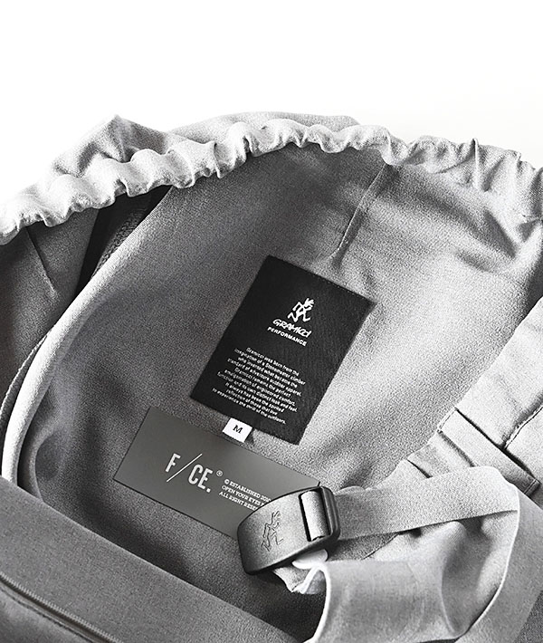ロッククライミングから派生したアウトドアブランドとして培ってきたグラミチ のアイテムに、機能性素材と都会的なエッセンスを加え、都市生活を送るための快適性とファッション性を追求したGRAMICCI Performance Lineから、F/CE.がより街着としてアレンジした別注ライン。