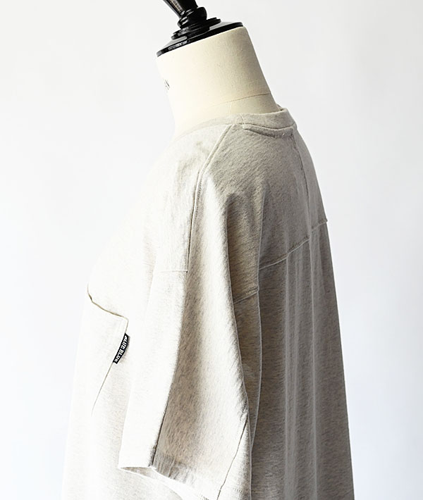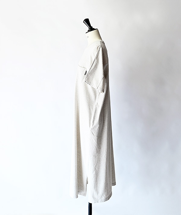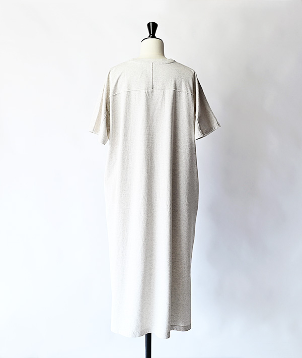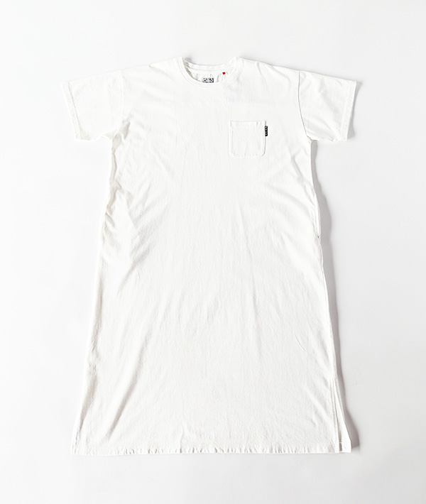 アメリカ綿を原材料としたBLUE BLUEオリジナルの定番生地「ヘビーテンジク」を使用したワンピースです。目を詰めてハリとコシを出し、厚みがありながらもドライタッチで夏場でも着心地の良い生地です。身幅の分量を取り、ボディラインを拾わず、膝がしっかりと隠れる、一枚で完結できる着丈のバランスとなっています。