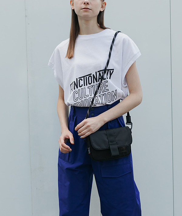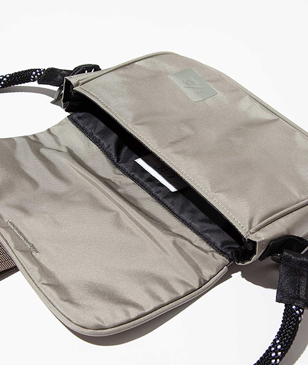 FCEの軽量素材「Robic Air」を使用した新型ミニポーチ。持ち手のマウンテンロープは取り外し可能で2WAYでの使用が可能。コンパクトなサイズ感はユニセックスで使用できるデザインに仕上げています。素材に使用する420DのROBIC糸は特注で中空糸にすることで、軽量で耐久性に優れた素材「Robic Air」が誕生。素材の持つマットシャイニーな表情はレトロな雰囲気を醸し出しています。