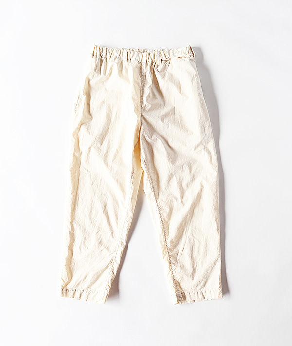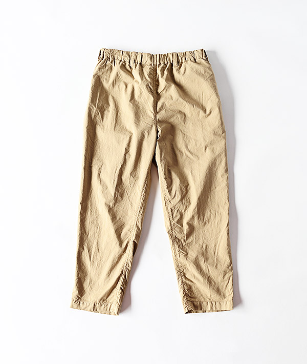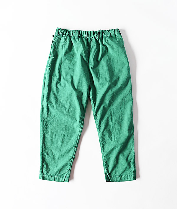 ストレッチが効いたジャストレングスパンツです。裏面がパイル地になっているので吸湿性、通気性ともに優れ、軽くてしわになりにくい素材なので丸めてバッグに入れて気軽に持ち運びができます。右脇にループがついているのでウォレットチェーンやカラビナにも対応。右ポケットは指が入れやすく設計されたコインポケット付きです。ウエストゴムがとても伸び縮みするので体型を選ばずフィットして動きやすい、まさにフィールソーグッドなパンツです。