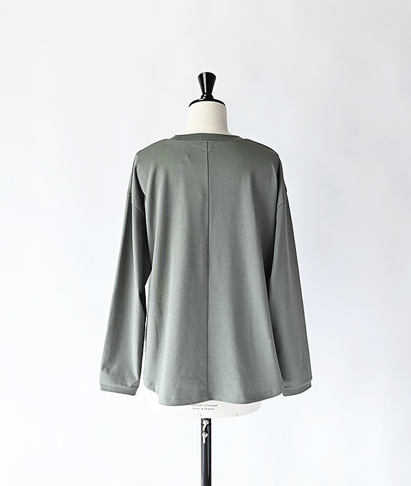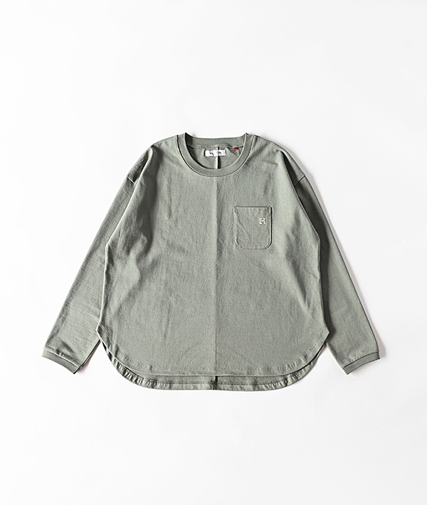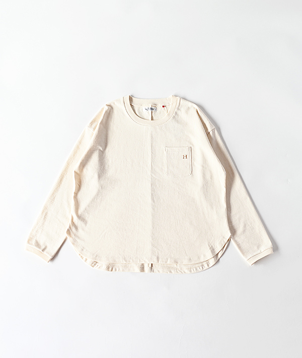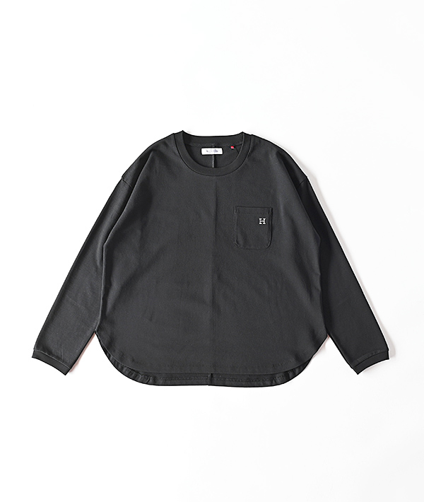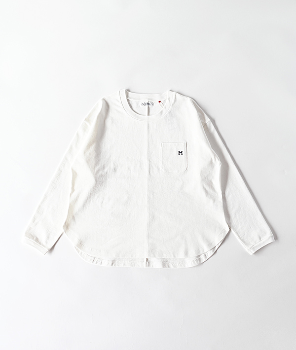 半袖で好評だったアイテムを長袖にアップデート。独特なシャリ感がありながら、柔らかさも持ち合わせたコットン天竺生地を使用したロングスリーブTシャツです。ゆったりとしたシルエットや、センターバックの切り替え、さりげなく胸にあしらわれた「H」刺しゅうもポイントです。タックインはもちろん、裾がラウンドテールになっているのでタックアウトしてリラックス感のある着こなしにもおすすめです。