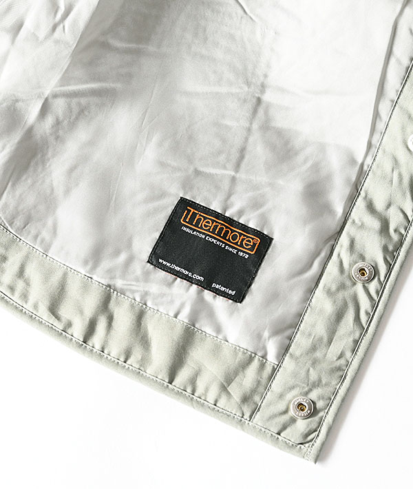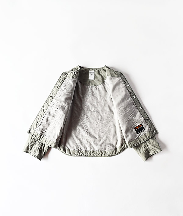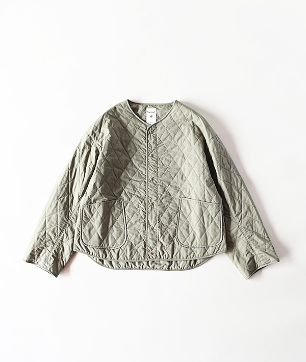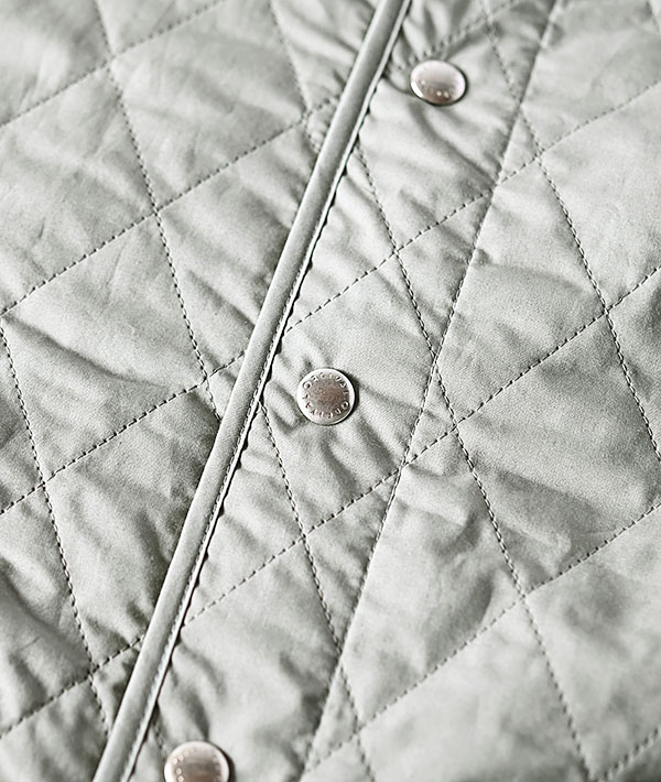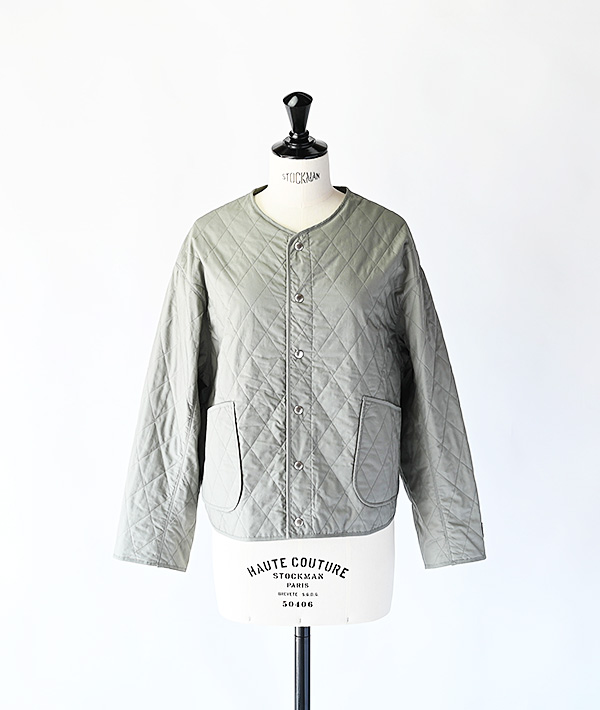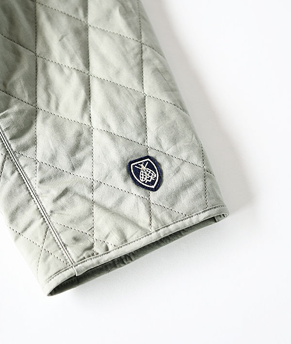 端正なダイヤキルトステッチが印象的なインサレーションジャケットです。ライトアウターとしてはもちろん、冬はコートの下に忍ばせてミドルレイヤーとしても活躍します。表地は滑らかな質感の高密度なタイプライター素材を使用。中綿にはイタリアの老舗メーカー、サーモア社の高機能中綿をキルティングし、薄手で軽量ながらも保温性の高さが特徴です。裏地には滑りのよいキュプラを採用し、厚手のニットやスウェットの上からもスムーズに重ね着ができる袖通しの良さです。左袖口にはお馴染みのブランドロゴが配されています。