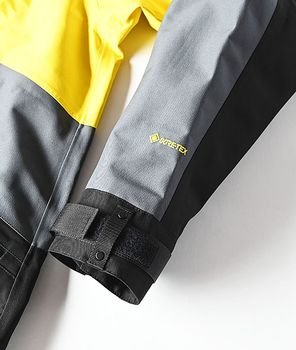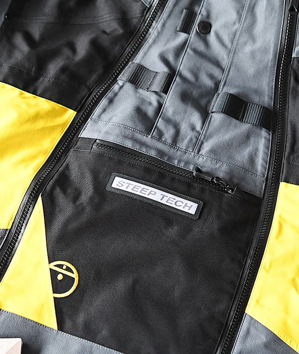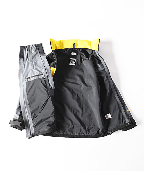 デザイナーやテクニカルコンサルタントなど、30年以上もTHE NOETH FACEのアスリートとして在籍するプロエクストリームスキーヤー、スコット・シュミットのSTEEP TECHシリーズです。90年代のデザインをモチーフに、最新の素材でリバイバルしました。堅牢な150デニールの2層構造GORE-TEXを使用し、裏地もやや厚手の30デニールのリップストップナイロンを採用。ヘリコプターなどでアプローチするスキーフィールドを想定したプロテクト重視の作りです。ベンチレーションは両サイド前面に配置し、積極的に風を送り込む仕様。フードはビルドインタイプで未使用時のもたつきを軽減し、袖口にウェビングテープを設けるなど、雪を浸入させないためのこだわりで仕上げています。