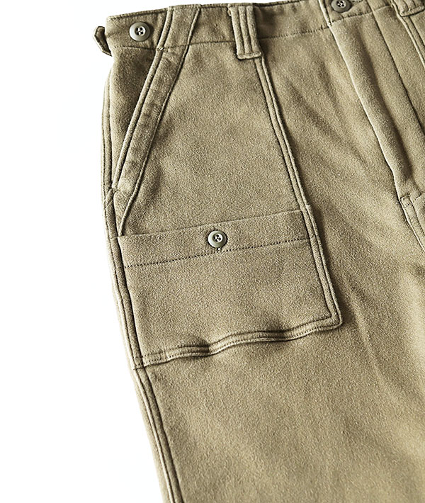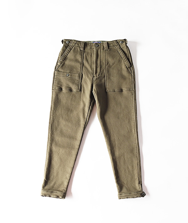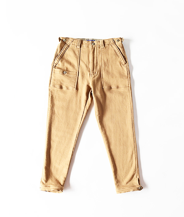 ヴィンテージのミリタリーパンツをアレンジしたパンツに、起毛させたフリースライニングを裏側に施した暖かく柔らかな生地感が特徴です、その名の通りのストレッチ性で穿き心地も抜群です。ウエストのアジャスターでのウエスト調整や裾のタブでシルエットの調整も可能です。