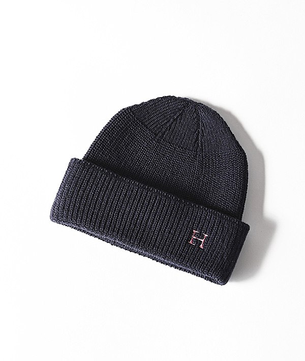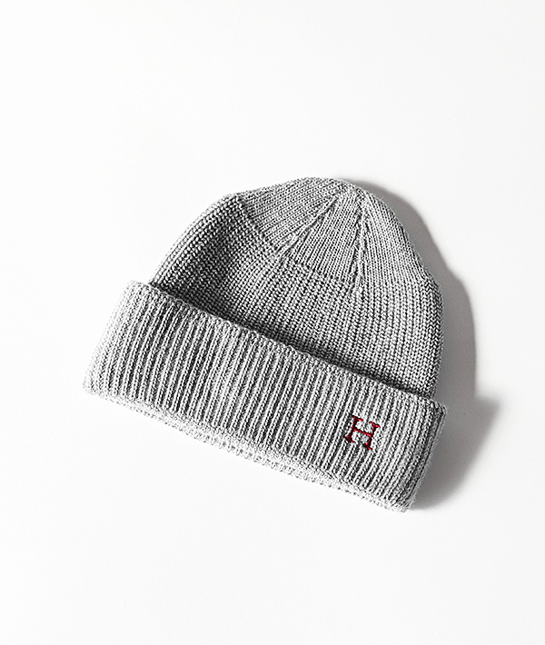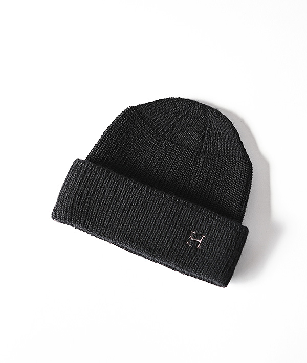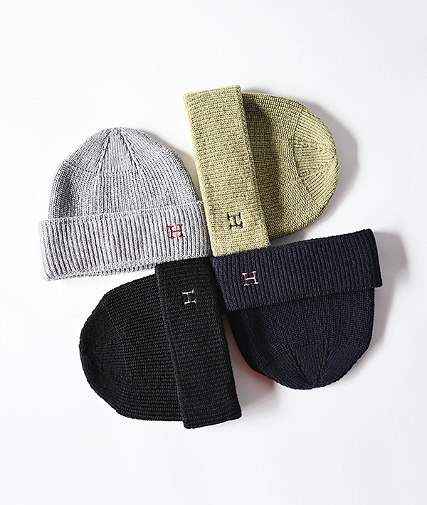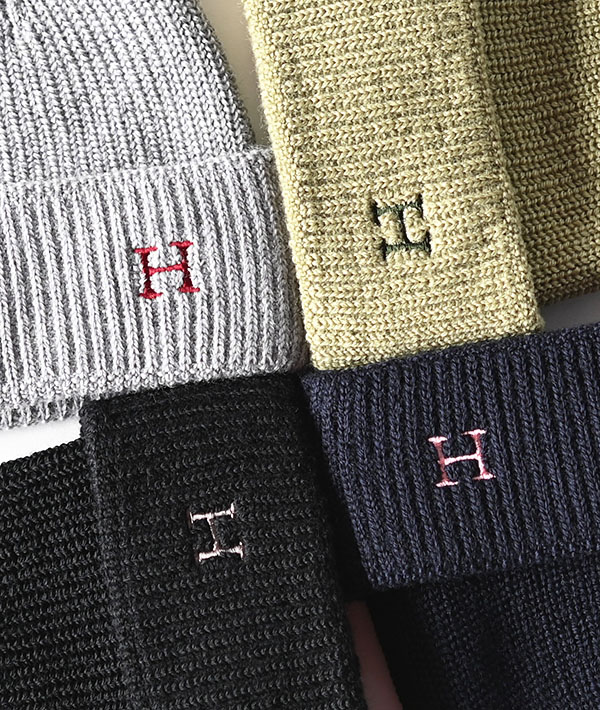 定番の「H」刺繡をワンポイントにあしらったニットキャップ。柔らかな風合いが心地良いメリノウール素材を用い、ホールガーメントという縫い目ができない縫製技術を用いることで、ストレスのない快適な着用感となっています。幅広いスタイルに調和するシンプルなデザインと、素材の持つ上品さと暖かさが魅力です。