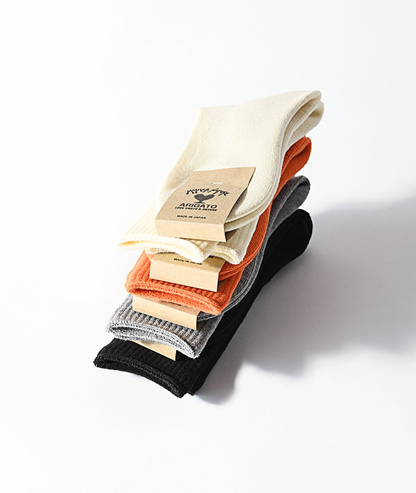 アクリルとウール混のパイル素材のスポーツソックス。程よい厚みで柔らかくて保温性もあり、弾力のあるパイル素材は長時間の使用でも疲れにくいことが特徴。締め付け感が少なく優しい履き心地ながらフィット感にも優れています。程よい大きさの「H」刺繡を施して仕上げています。