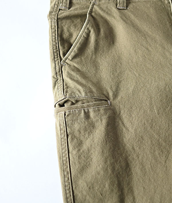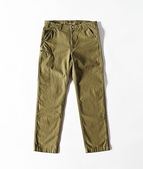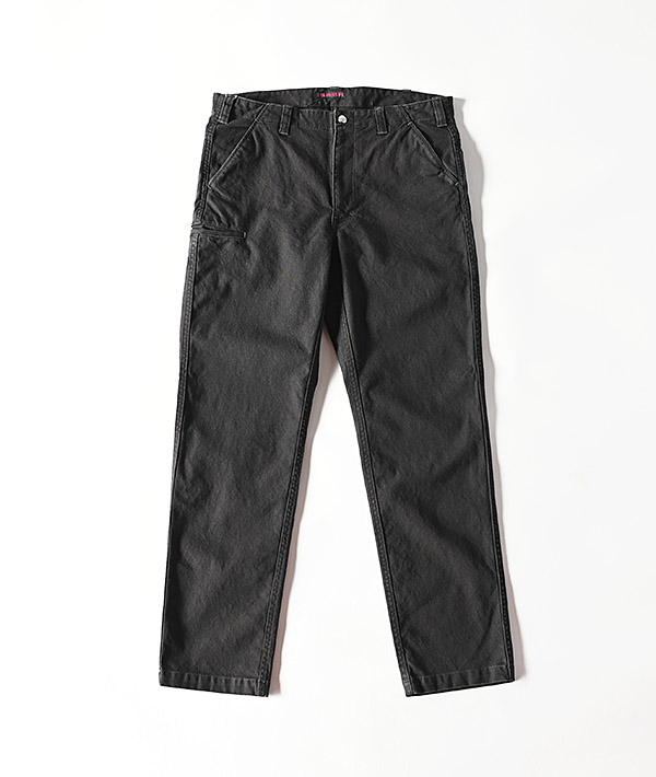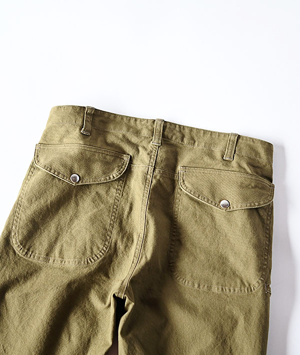 ヴィンテージのロガーパンツをモチーフに硫化染料を使用した色落ち、経年変化の良いオックスストレッチ生地を用いて、すっきりと穿けるスリムシルエットに仕上げています。後ろのポケットや前身頃のポケットなど特徴的なディテールが魅力です。