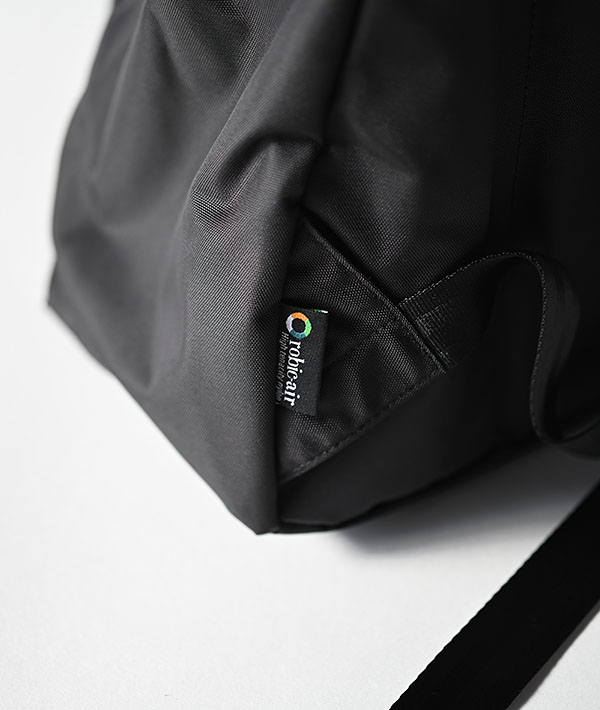 軽量で耐久性に優れた素材「Robic Air(ロビックエアー)」を使用したデイパック容量30L。オーセンテックなシンプルなフォルムはユニセックスで使用可能。軽量アルミニウムパーツや本物のシートベルト素材の高強度ウエビングテープを用いるなど機能的な仕様。中空糸のロビックは非常に軽量で使い回しのきく鞄です。Robic 420DではCordura 500Dと比較して、80%強の軽さながら、引裂強度では約85%、引張強度では約110%の強度と同等の耐摩耗性を誇ります。 また420DのROBIC糸は特注で中空糸にすることで、軽量で耐久性に優れた素材「Robic Air(ロビックエアー)」が誕生しました。素材のもつマットシャイニーな表情はレトロな雰囲気を醸し出します。