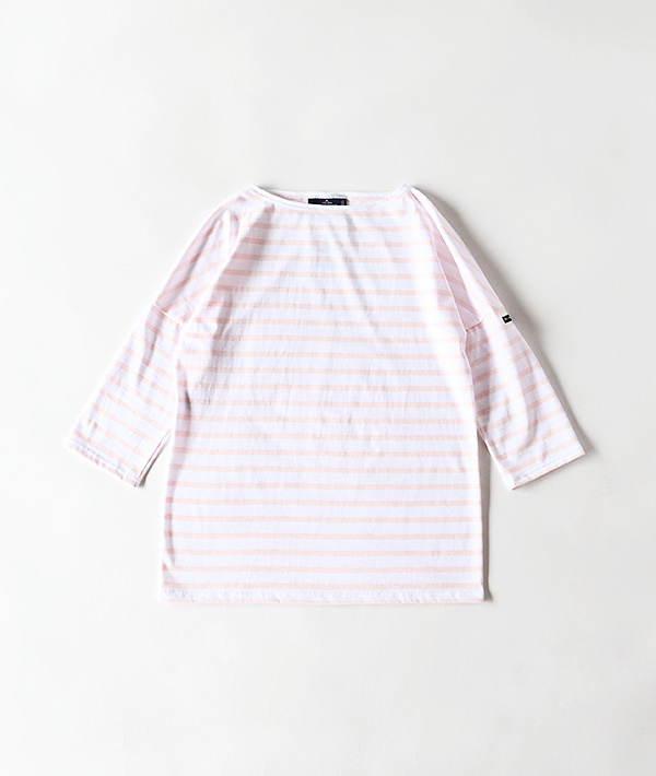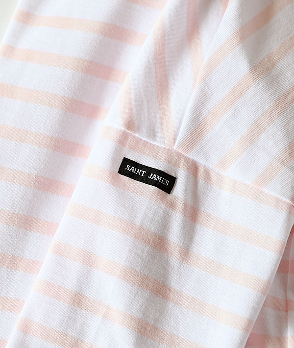 SAINT JAMES (セントジェームス) SLOUCH 七分袖ドロップショルダー ホワイト×ドラジェピンク【WOMENS】
