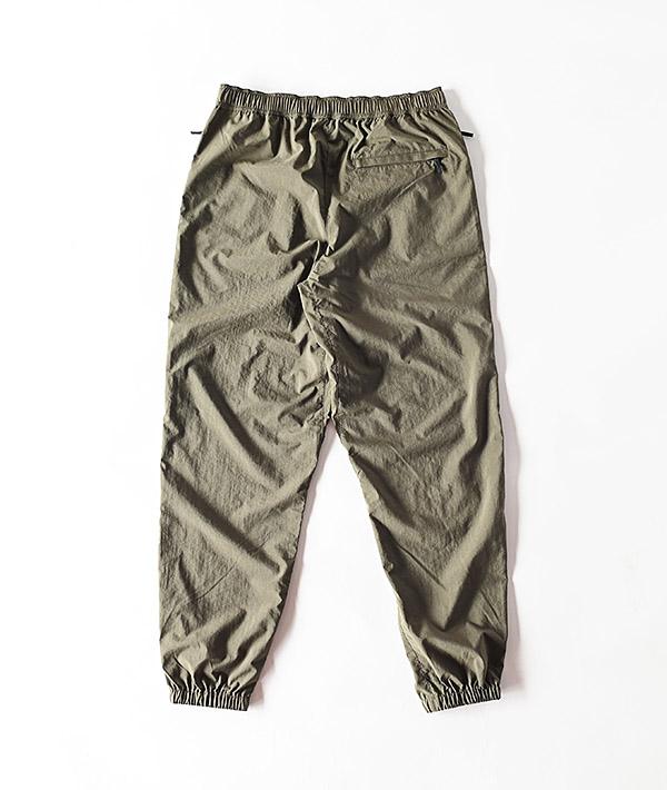 軽量で乾きやすいナイロン素材を使用した、シンプルなイージーパンツ。シワ感のある生地でドライタッチに仕上げました。撥水加工を施しているため、多少の雨にも対応し、水辺のアクティビティにも適しています。コンパクトに畳んで持ち運ぶことができ、替えのパンツとして、トラベルにも重宝します。ウエストはサイズ調節のしやすいスピンドル仕様。静電気の発生を抑える静電ケア設計を採用しています。