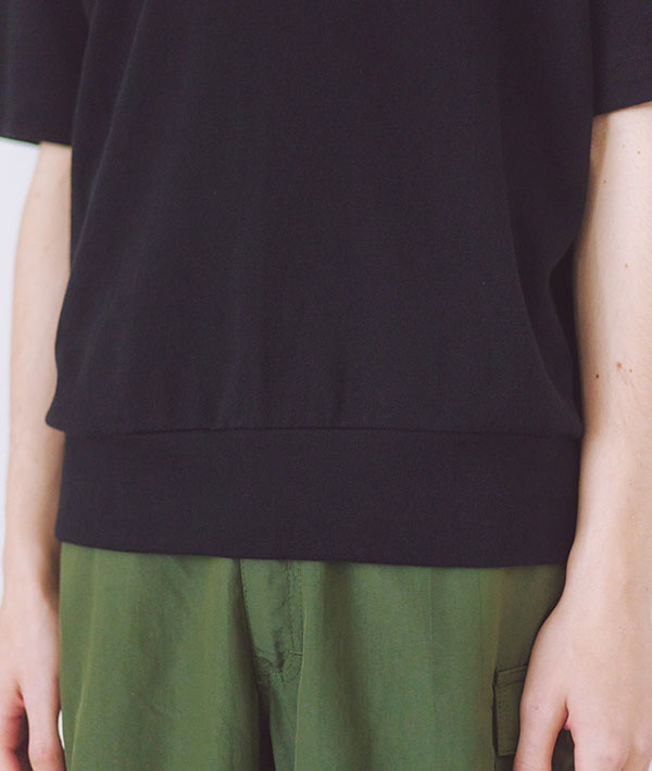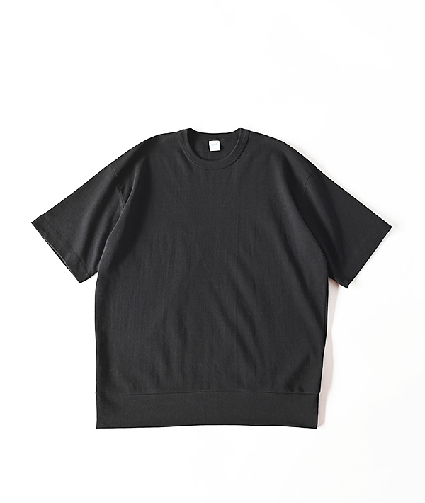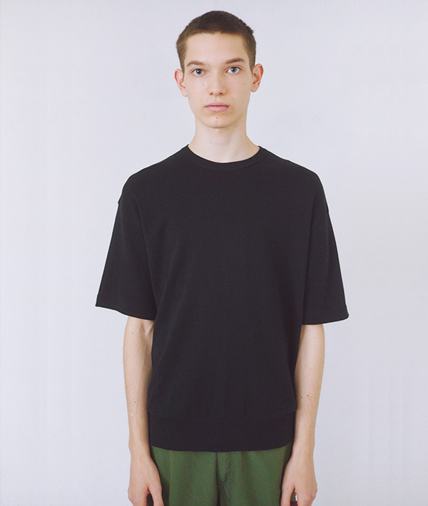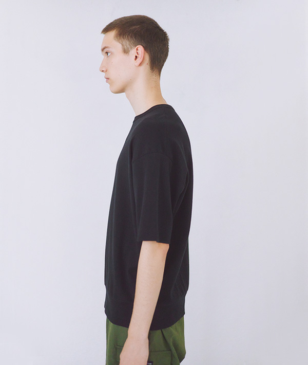 クルーネックリラックスフィットTシャツ。肩幅、身幅にゆとりをもたせています。大人が着用しても決して子供っぽくならない秀逸したバランスが特徴。裾は8.0cm幅ダブルの1×1リブになっており、スウェット感覚で色々なコーディネイトに活躍します。柔らかく肌になじむフライス素材は着心地抜群、また色々なスタイリングにも合わせられるので定番アイテムとしてワードローブに欠かせない大変便利なアイテムです。