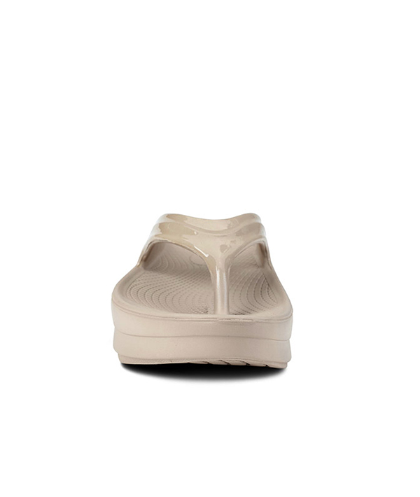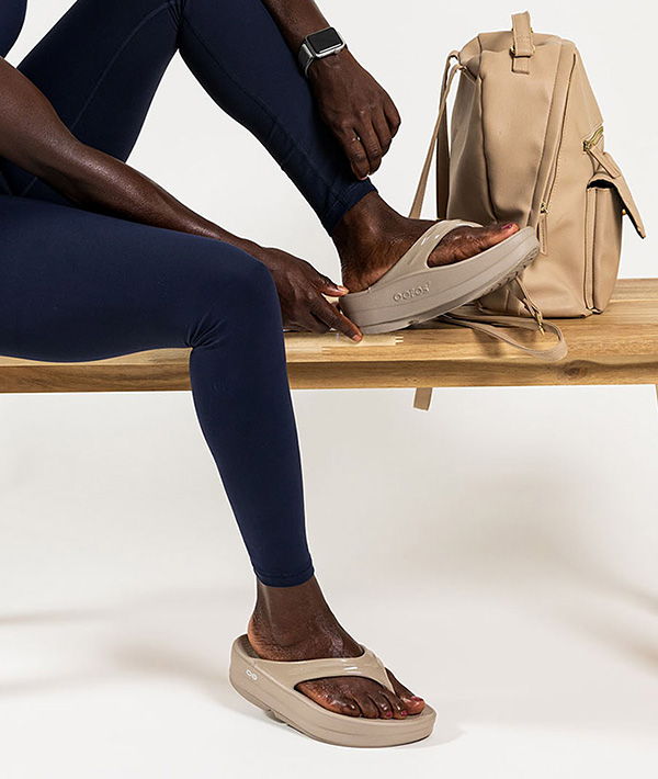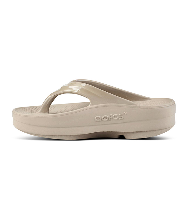 2011 年にマサチューセッツ州のコハセットでスポーツ選手やトレーナー、大手シューズメーカーの製品開発に携わるベテランチームにより、2 年半の歳月をかけ開発されたリカバリーシューズブランドです。OOFOS製品に使われている特殊素材「OOfoam(ウーフォーム)」 は、前進力を生む事を目的とした一般的なEVA 素材のミッドソールと異なり、衝撃の反発を37% 抑えることができ着地による足裏への衝撃を軽減。言い換えれば、1歩踏み出すたびに3分の1もの衝撃を減らしていることになります。そのため膝、腰、背中にかかる負担を軽減でき、また人間工学に基づいて設計されたフットベットにより、足を優しく包み込み、土踏まずをしっかりサポートします。