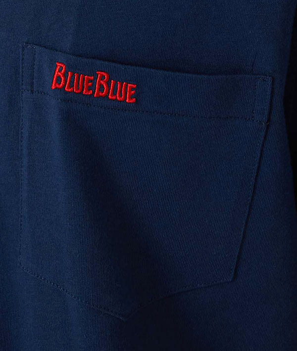 「FRUIT OF THE LOOM」と「BLUE BLILE」のコラボレーションによる2パックTシャツ。こちらは、左胸にBLUE BLUEのロゴ刺繡が入ったポケット付きで、ややゆったりとしたボックスシルエットです。素材は年間を通して使いやすい「5.3oz」オーガニックコットンを使用。WHITEカラーはホワイトの2枚セット(REDとBLUE刺繡)、NAVYカラーはネイビーとホワイトの2枚セット(REDとLT GREEN刺繡)です。