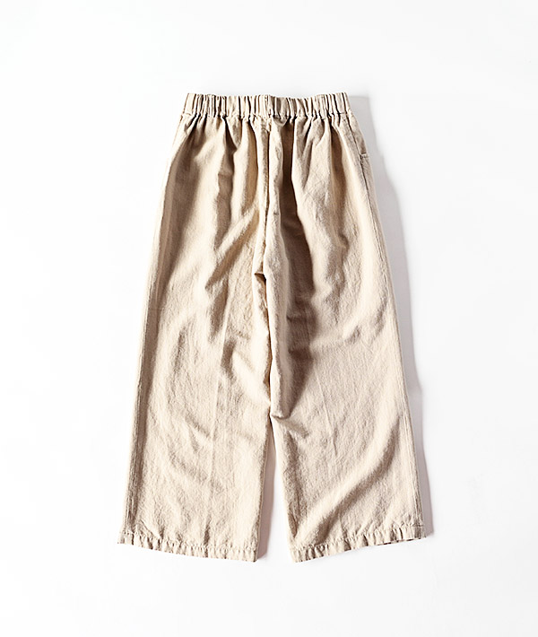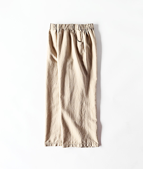 和紙の糸と綿の撚糸を使って織り上げられたダンガリー生地を用いたイージーパンツ。和紙独特のハリコシ感とドライな風合いが夏らしさを演出。見た目の印象通り、とても軽い着用感で暑い時期にも快適に過ごすことができます。無駄をそぎ落としたシンプルな仕様にしており、コーディネートにも取り入れやすいパンツです。