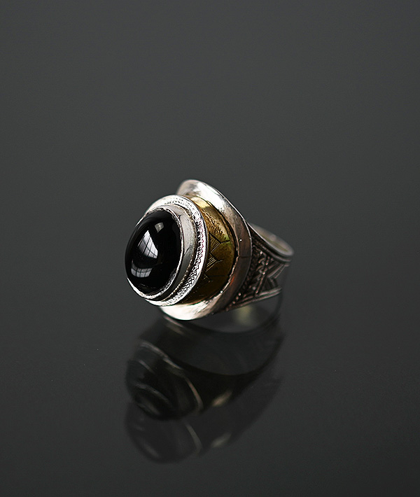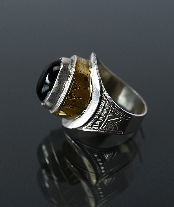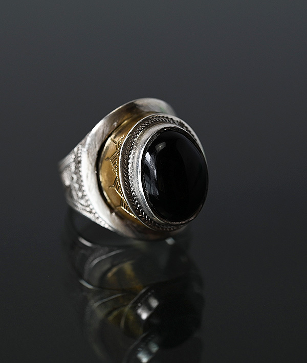 シルバーと金メッキ、天然石にはオニキスを使用しています。