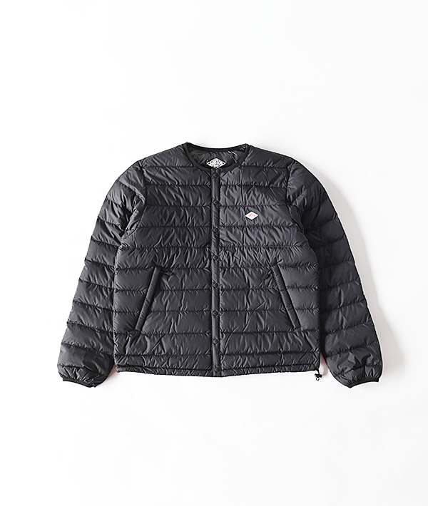 ダントンの冬の人気アイテム、インナーダウンジャケット。適度なフィット感とすっきりとした着丈のコンパクトシルエットで、アウターの下にもすんなりとおさまります。一枚でも十分な防寒性があり、秋から春にかけてロングシーズンで活躍します。素材には、しなやかな質感にこだわった高密度ナイロンタフタを使用。胸元のロゴマークがアクセントになったシンプルなノーカラーデザインは、トップスを選ばず様々なスタイリングにマッチしてくれます。持ち運びに便利なスタッフバッグが付属します。