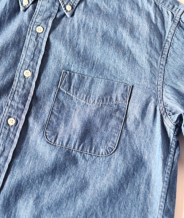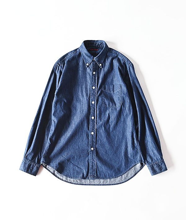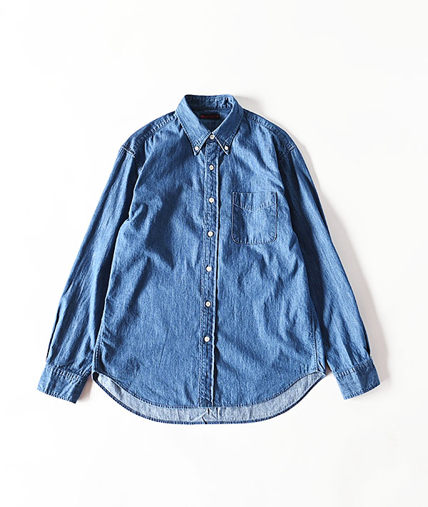 経糸にムラ糸を用いた6オンスのライトデニムで仕立てたボタンダウンシャツ。程よくゆとりのあるレギュラーフィット。ボタンダウンシャツの上品な雰囲気と味わいのあるデニム素材がうまく調和しています。タックインしてドレスアップしたり、普段使いでカジュアルに使ったりと汎用性の高い一着です。