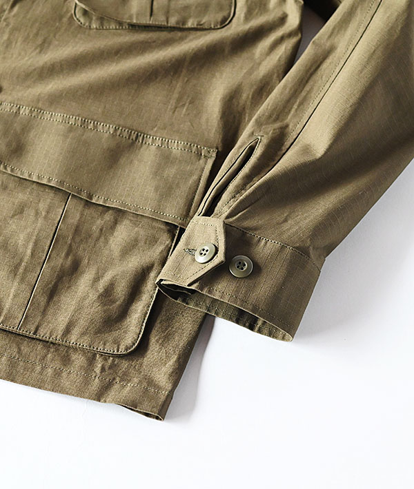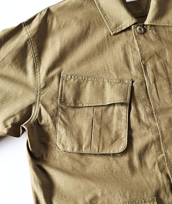 ミリタリーアイテムとして人気のあるファティーグジャケットをベースに現代風にアレンジ。ファティーグジャケットは、主に70年代ベトナム戦争時にアメリカ軍が着用していた作業用ジャケットです。軽量な100%コットンのリップストップ生地を使い、ジャケットとしてはもちろんシャツ感覚で羽織りとしても活躍してくれるアイテムです。