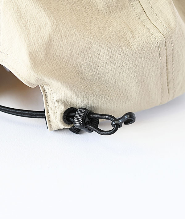 環境に配慮した軽量なリサイクルリップストップナイロンを使用したストレッチキャップです。豊かな伸縮性でフィット性が良く、サイズ調節が容易にできるアジャスター付き。サイズ調整部に設置したフックにより、ザックやベルトなどに簡易的に連結することが可能です。ベーシックなデザインの機能的なヘッドウェアとしてシーンを選ばず幅広く活用できます。