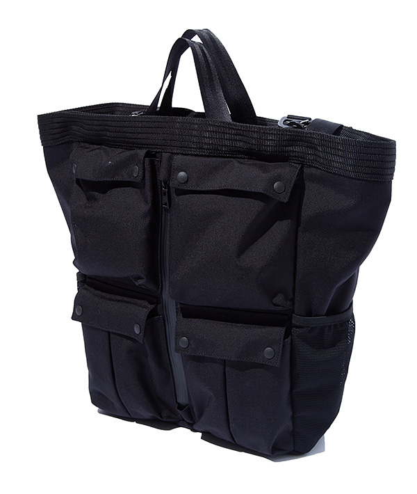 FCE別注のCORDURA難燃素材を使用したタクティカルトートバッグ。持ち手は取り外し可能で2WAYでの使用が可能です。PCスリーブも内蔵しデイリーユースなモデル。タクティカルラインの象徴である無数のボックスポケットのディテールが機能性を確保。500デニールの難燃CORDURAを別注した素材は、特殊な加工により燃えにくい加工を施した素材。耐久性はCORDURA基準を維持。クラシックな雰囲気を演出し、軽さと強度のバランスが非常に優れます。