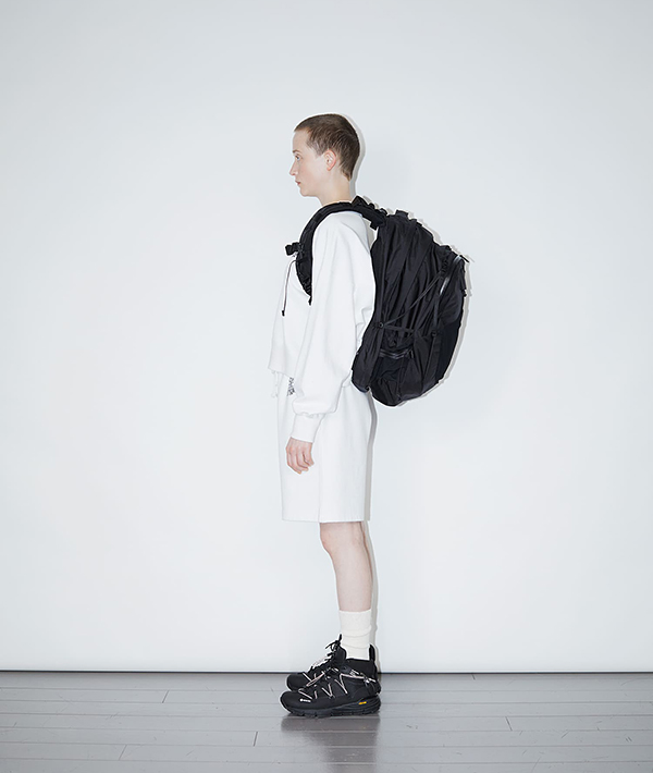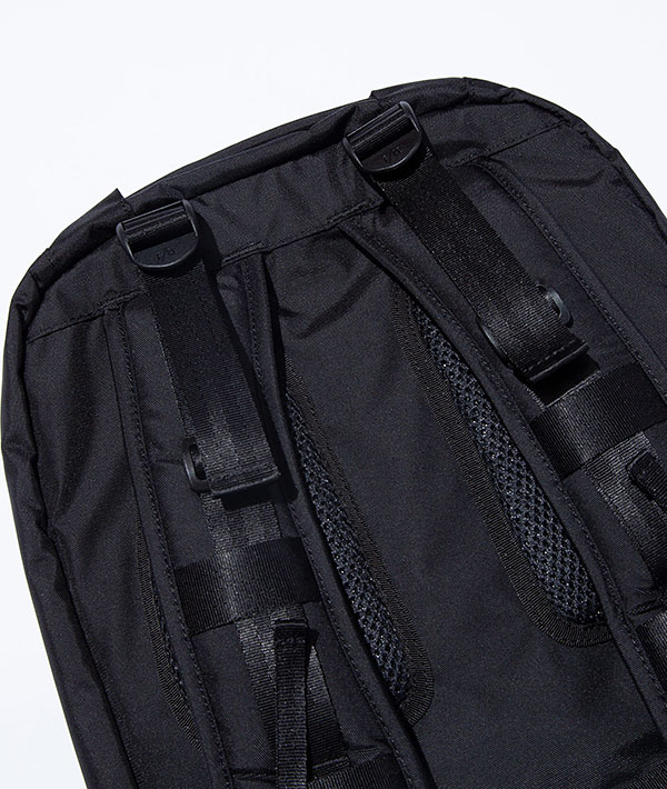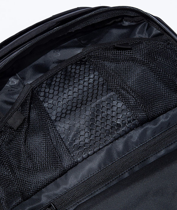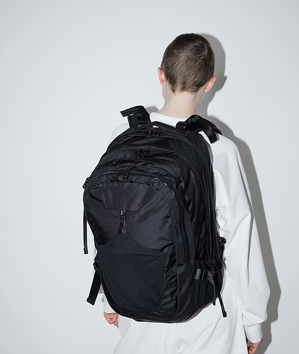多機能にわたるコンパートメントが特徴的なユーティリティバックパック。1泊2日用の旅を想定し設計され、45リットルを誇る大容量バッグです。ショルダーにはサコッシュやポーチなど取り付けられるMOUNTING T SYSTEMを搭載。フロントにはマルチガジェットポケットを内装に装備しており、ペンやノート、スマートフォンなど様々なサイズの小物の収納に対応した幅広いポケットに、キーフックまでが備わっています。背面には17インチまでのラップトップも収納可能。テープのロールエンド処理や、肩のカーブに沿うように工夫されたショルダーは、長時間背負っていても疲れにくい設計で、機能と快適さを追求しています。