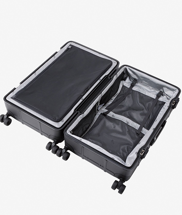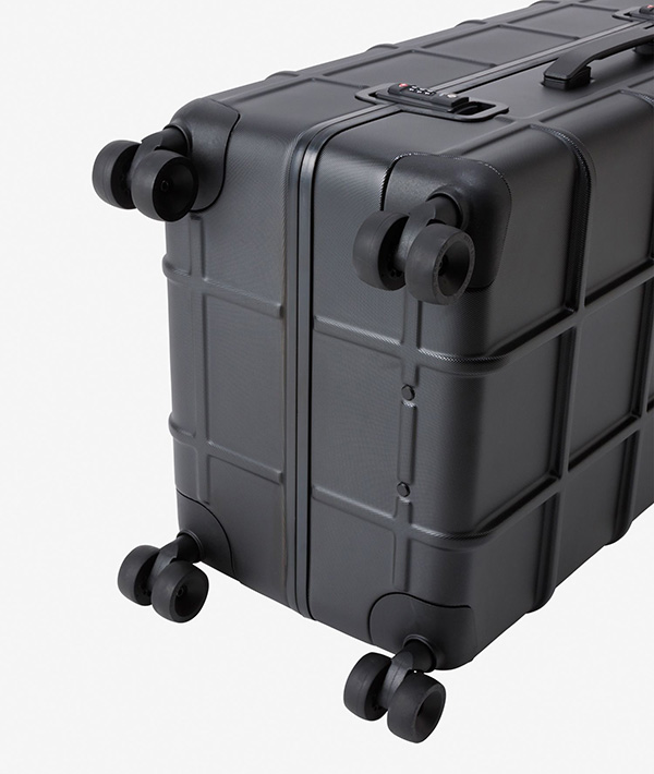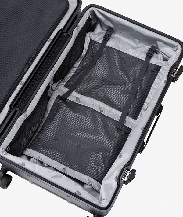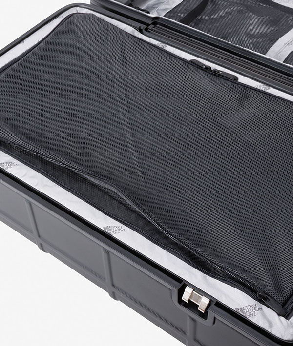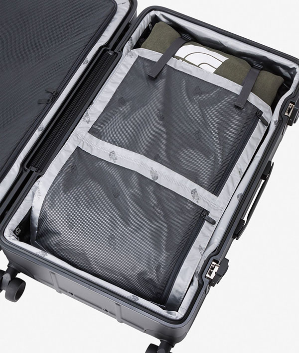 耐候性に優れるポリカーボネート素材を使用した、クラムシェルタイプのハードウィーラーです。足まわりは操作性に優れる4軸ウィーラー。開口部にはパッキン処理を行い、防水性を向上。ロック構造には、米国運輸保安局より認可を受けた先進のロックシステム、TSA LOCK(アメリカ合衆国国土安全保障省の運輸保安庁から認定を受けた施錠機構の総称)を採用しています。これにより、アメリカ国内での運輸保安局による乗客の荷物検査に適用。鍵をロックしたまま預け入れが可能です。内部には、シャツやジャケット、その他の衣類分別が楽にできる、取り外し可能なディバイダーとオーガナイザーでデザインしています。容量70L